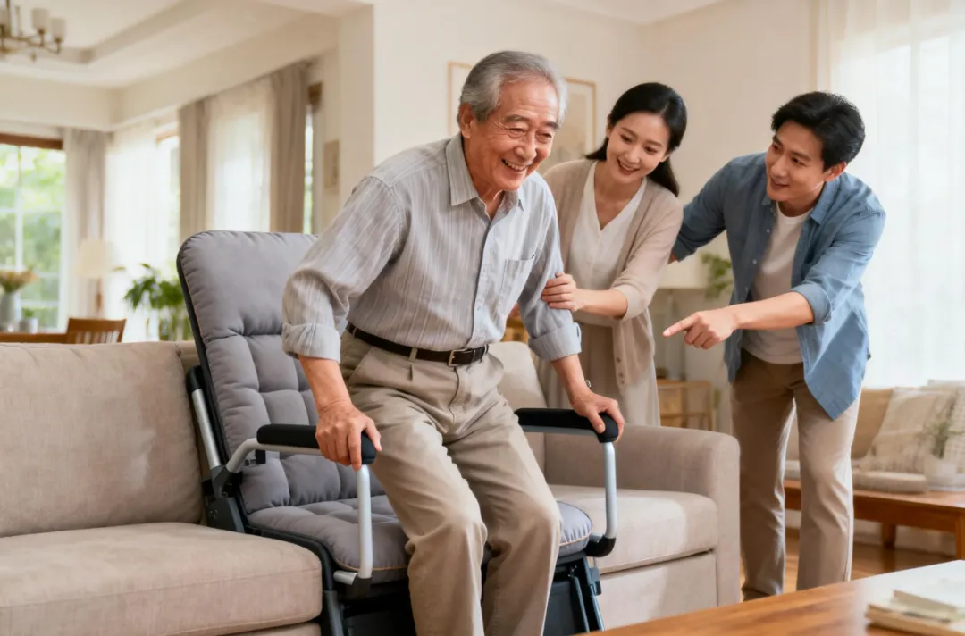 “爸,我给您这椅子上加了个垫子,您试试现在起身是不是轻松点儿?”
