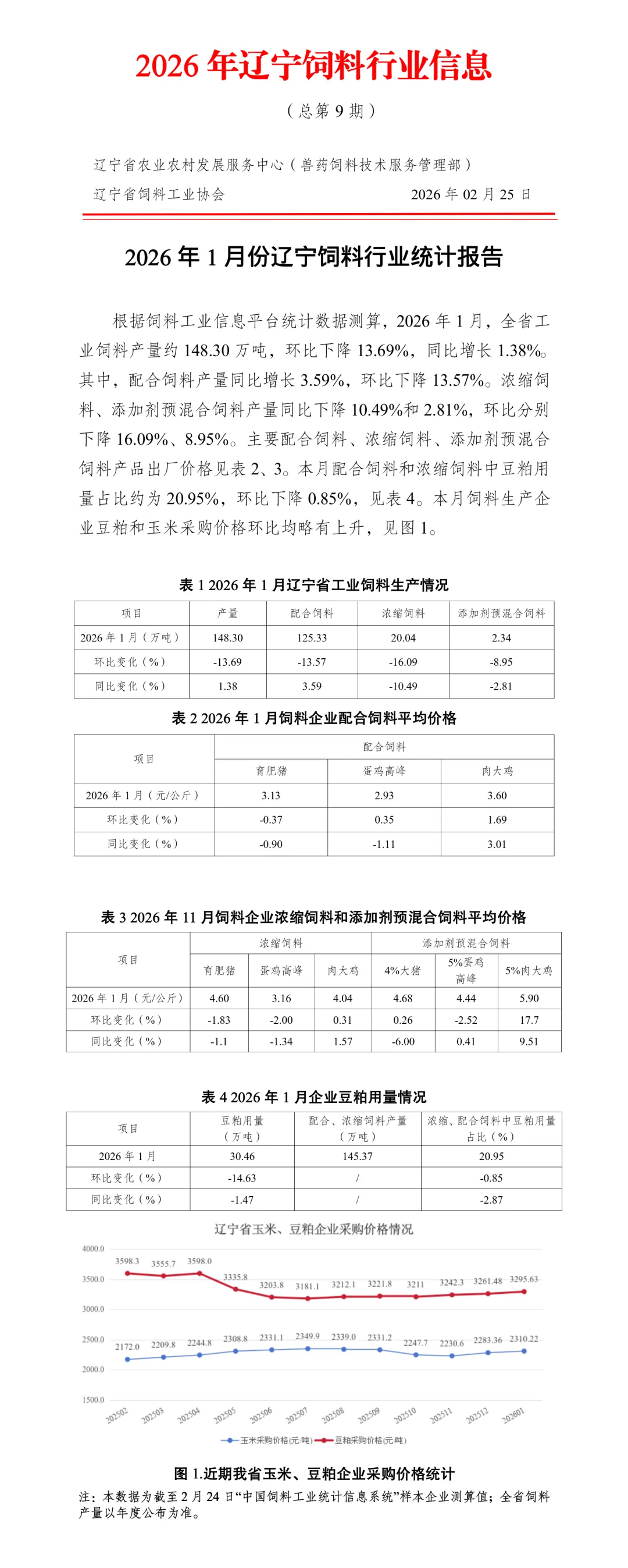 2026年1月份辽宁饲料行业统计报告