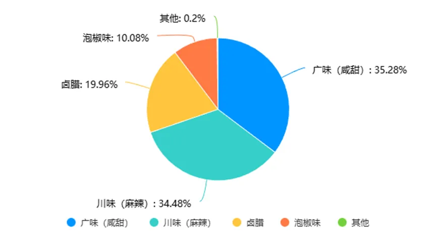 1.口味偏好排名:原味(综合得分3.78/5)占比39.31%,麻辣味占比34.48%,广味(咸甜)占比35.28%,糯米味占比28.43%。其中,西南地区麻辣味偏好度达68.29%,华南地区广味偏好度达72.13%,华东地区原味与糯米味接受度较高,呈现“地域分化+多元共存”特征。
