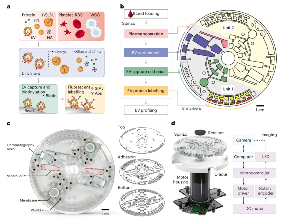Woo, Hyun-Kyung, et al. "Automated disc device for multiplexed extracellular vesicle isolation and labelling from liquid biopsies in cancer diagnostics." Nature Biomedical Engineering (2026): 1-15.