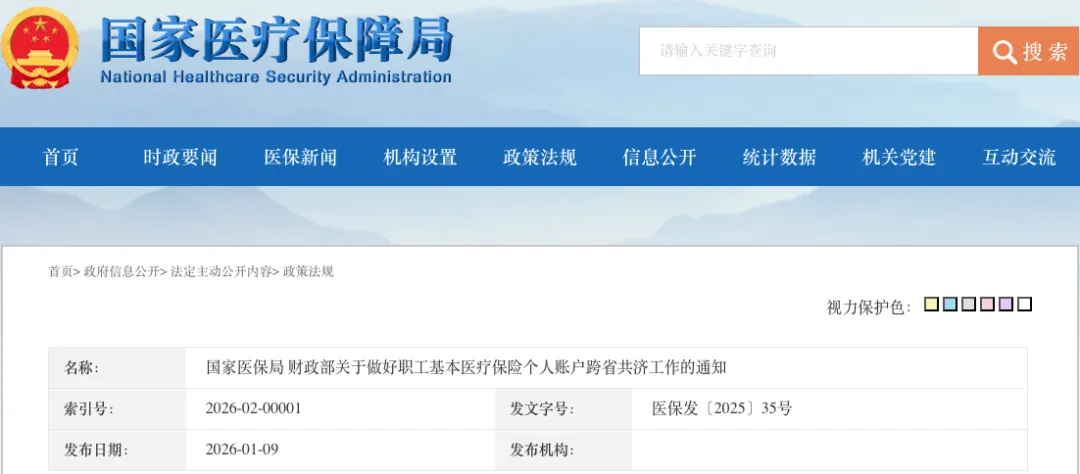 国家医保局发布:《国家医保局 财政部关于做好职工基本医疗保险个人账户跨省共济工作的通知》