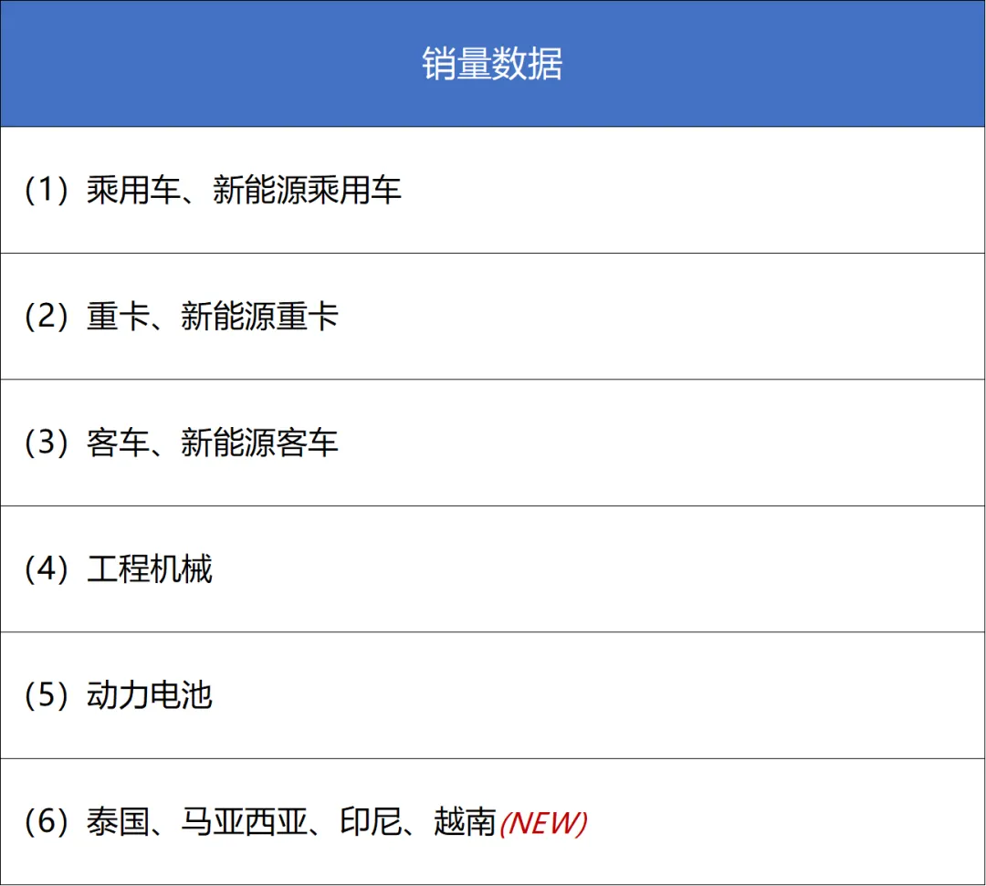 聚焦汽车、工程机械、动力电池等TOP10企业的产销、出口数据,及时精准了解发展趋势有辅助作用。