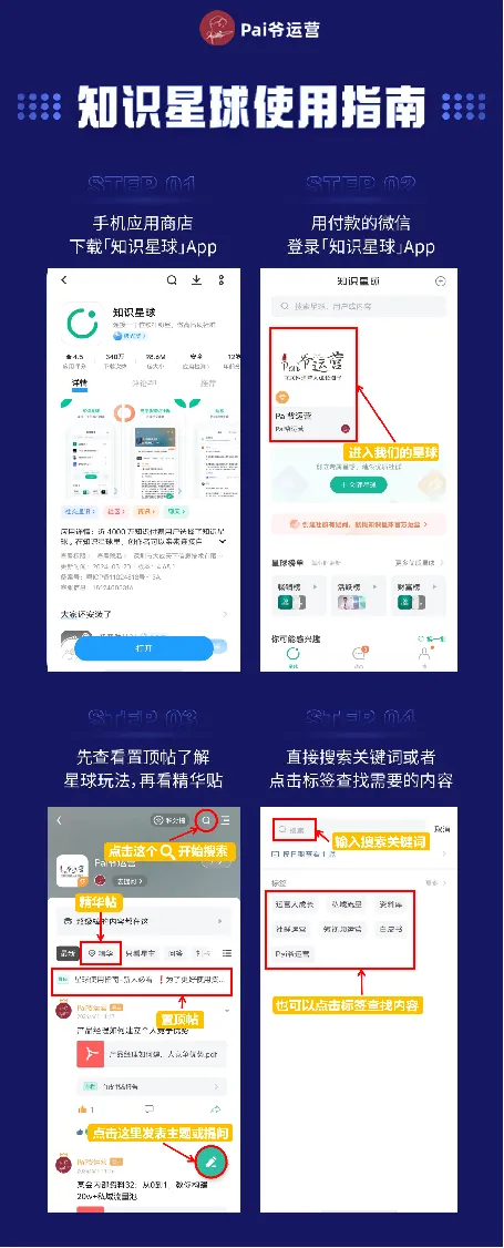 扫码付款后请去应用商店下载「知识星球」App,用付款的微信登录App即可进入「运营研究社」知识星球,及时获取星球里分享的最新干货啦~
