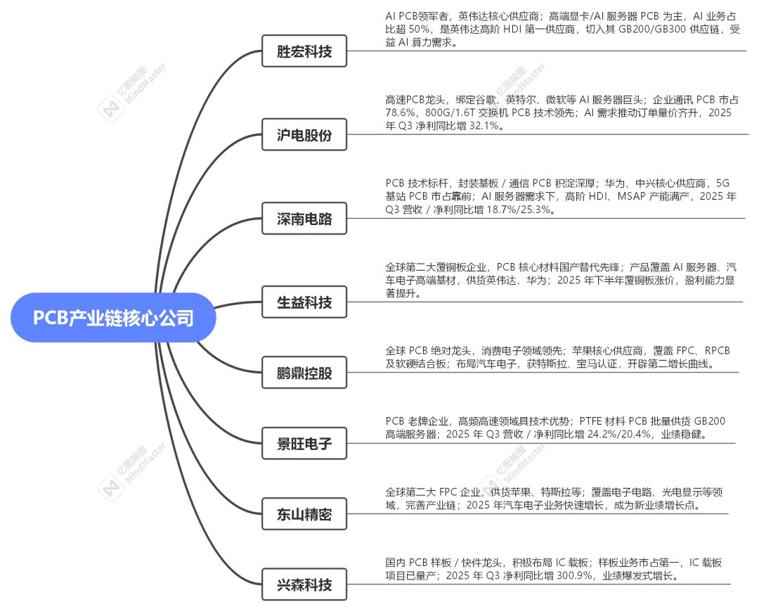 最后给大家梳理一下PCB产业链核心标的