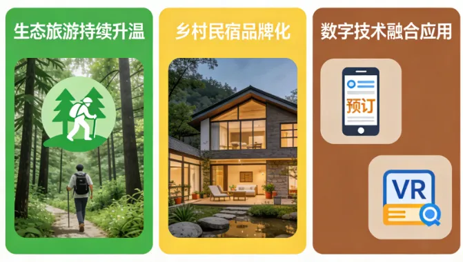 3. 趋势三,品质与体验升级:从观光向微度假、定制游转变,民宿、餐饮、服务标准化、精品化。
