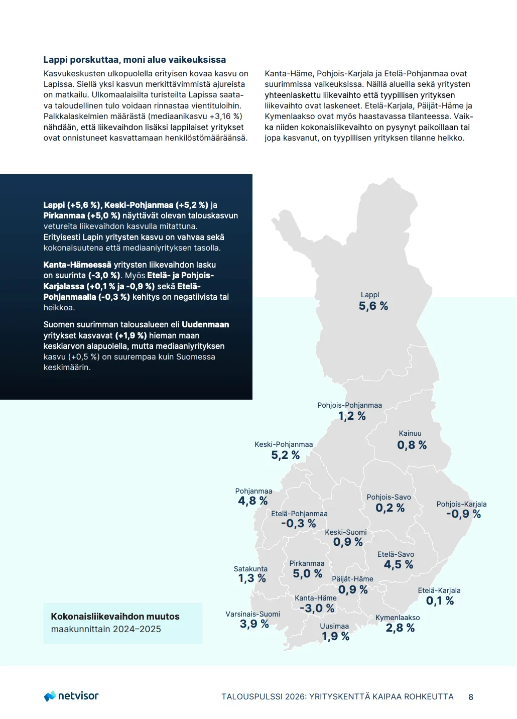 Talouspulssi 2026 报告基于 Netvisor 覆盖近 20,000 家客户企业的广泛数据(2024–2025 年),对芬兰企业的现状和近期未来展望进行了综述。