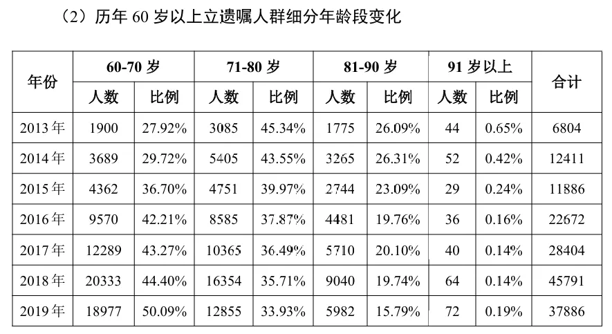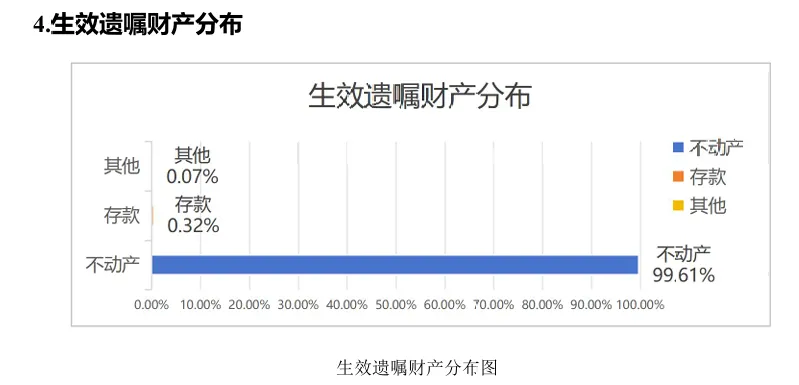 值得关注的是,有5%左右的遗嘱人名下没有不动产。该现象说明,部分中青年人逐渐意识到订立遗嘱的重要性,即使没有像不动产这种重大的资产,也提前做好了安排。