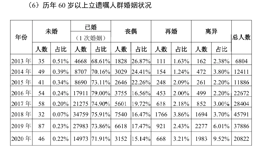 随着年龄的增长,大部分的遗嘱人对配偶会更加依赖和感恩,更放心由配偶直接继承财产。