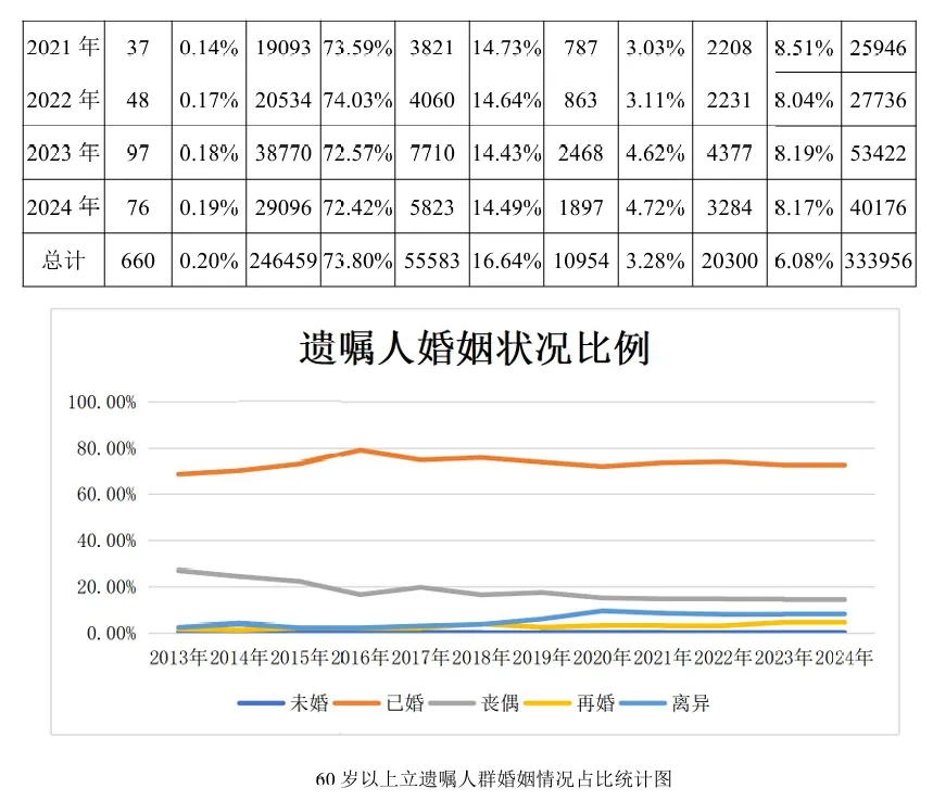 经分析,未婚、不婚人群中,有1.60%为了照顾子女,说明非婚生子女的情况客观存在;