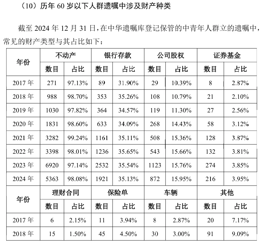 对比发现,中青年立遗嘱人群处理不动产的数据比例相对低于老年群体。