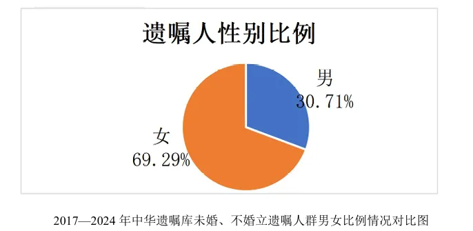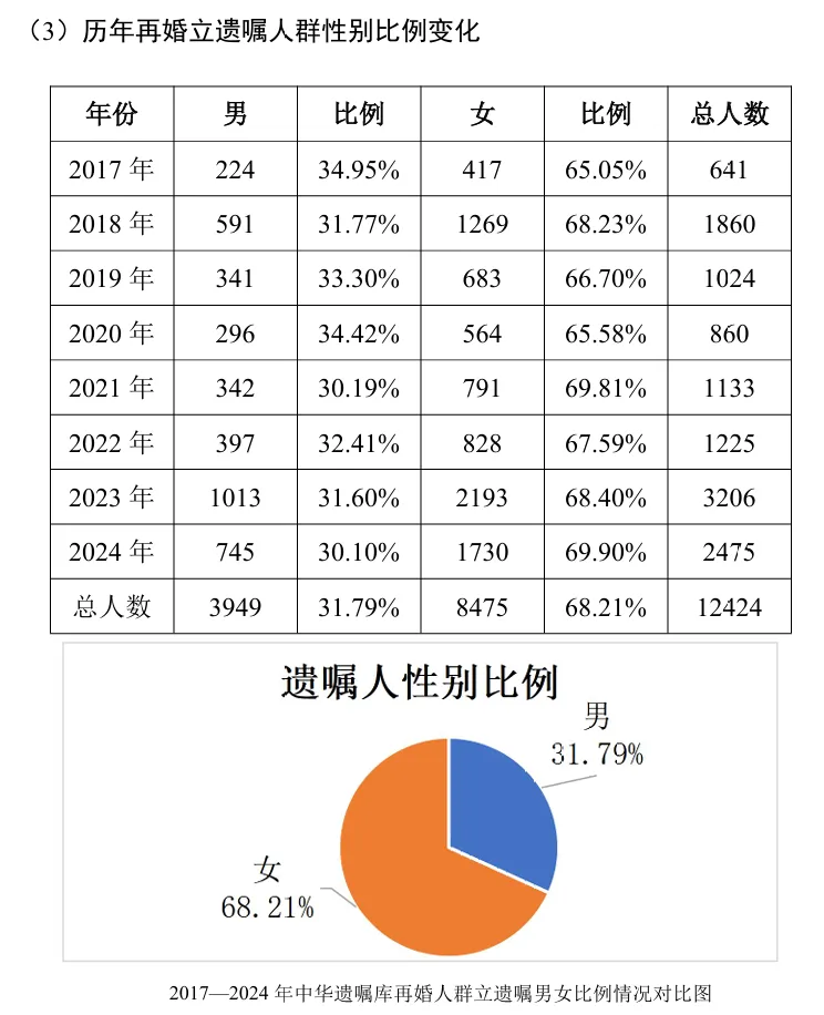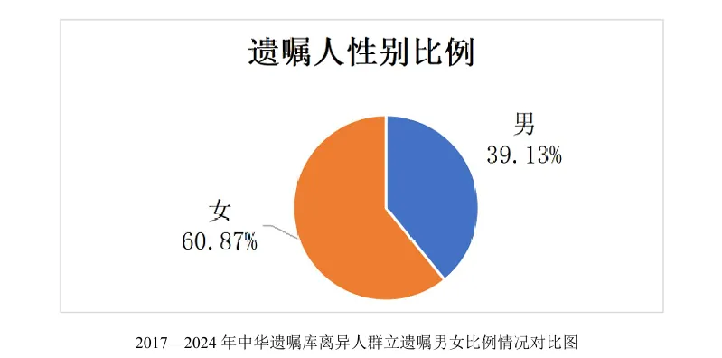 历年离异人群立遗嘱的性别比例相对稳定,女性占比高于男性。