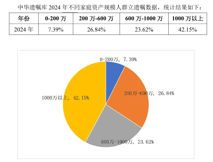 家庭资产超过1000万的高净值人群中,是所有区间中立遗嘱比例最高的群体。这一数据反映了高净值人群对遗产规划的重视程度,也揭示了他们在财务规划和家庭财富传承方面的深思熟虑。