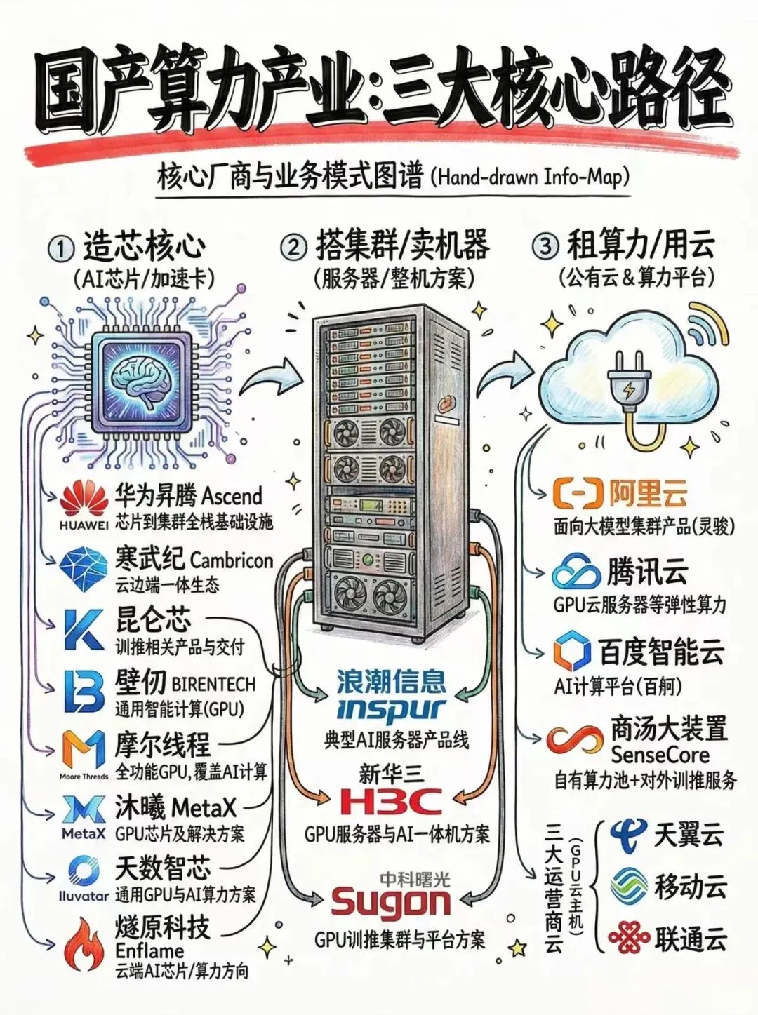 1. 战略安全:外部技术限制加速供应链自主可控,高端算力芯片、集群、软件生态必须本土化。