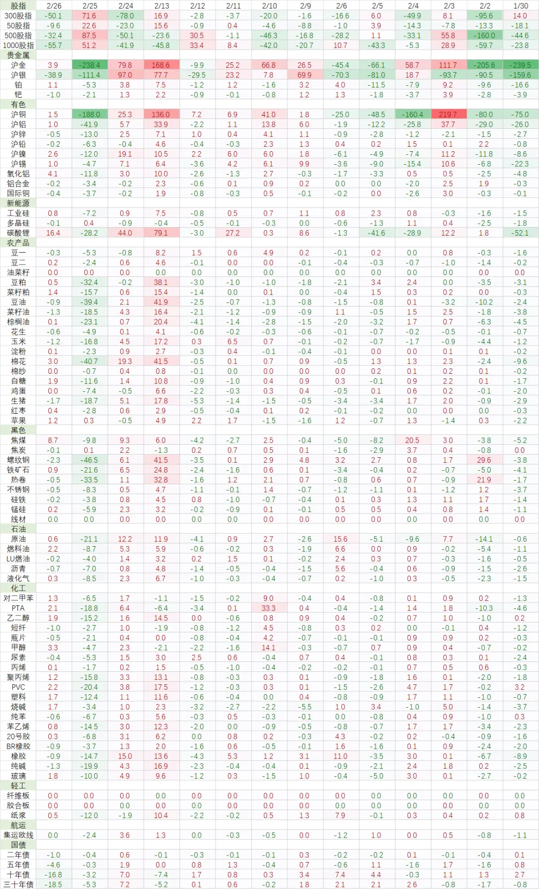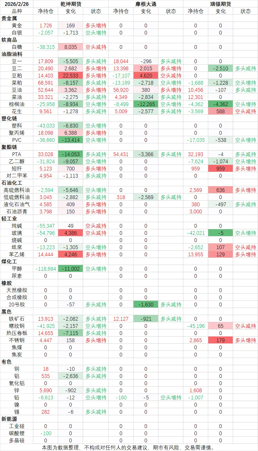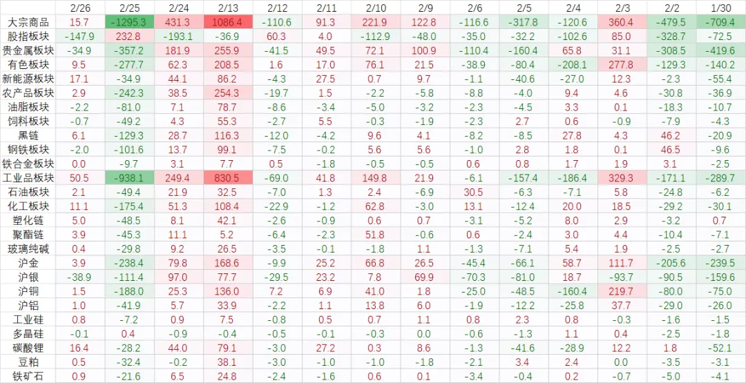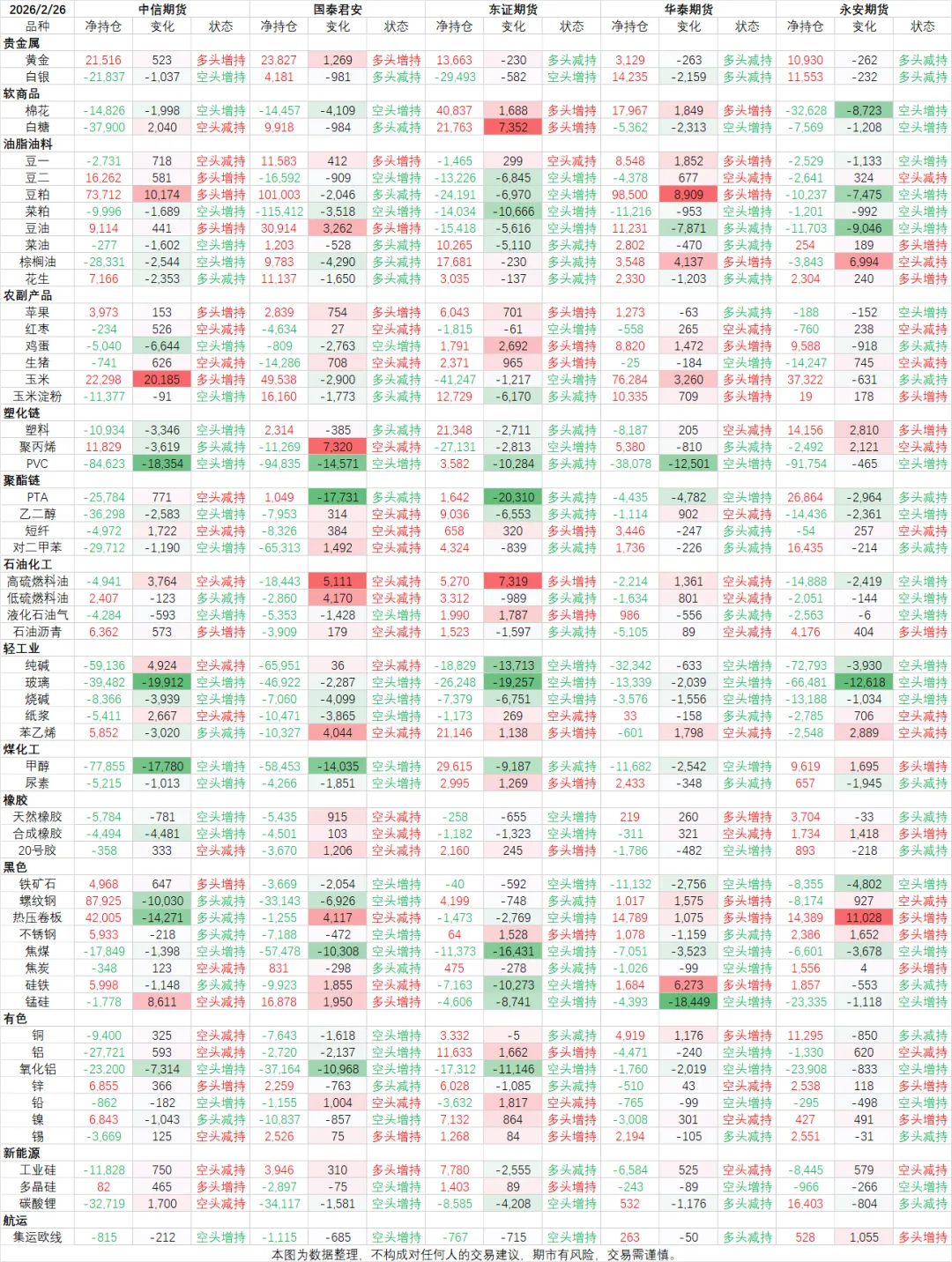 国内头部机构净持仓