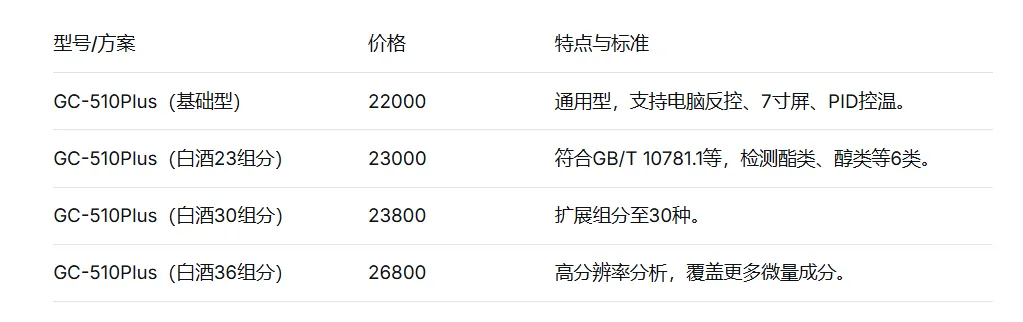 基础实验室:选择GC-510Plus(基础型)22000元,搭配所需色谱柱即可开展常规分析。