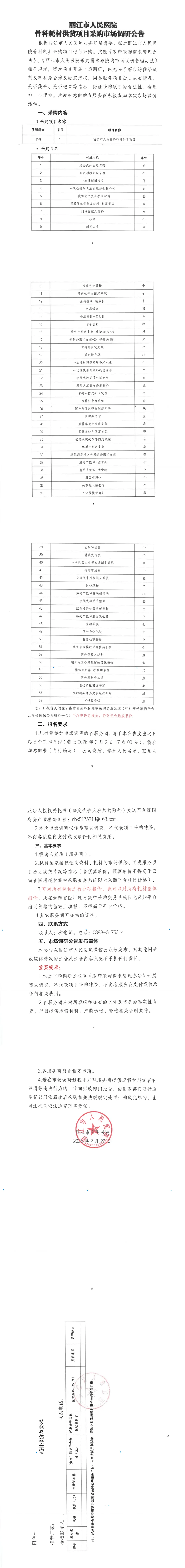丽江市人民医院骨科耗材供货项目采购市场调研公告