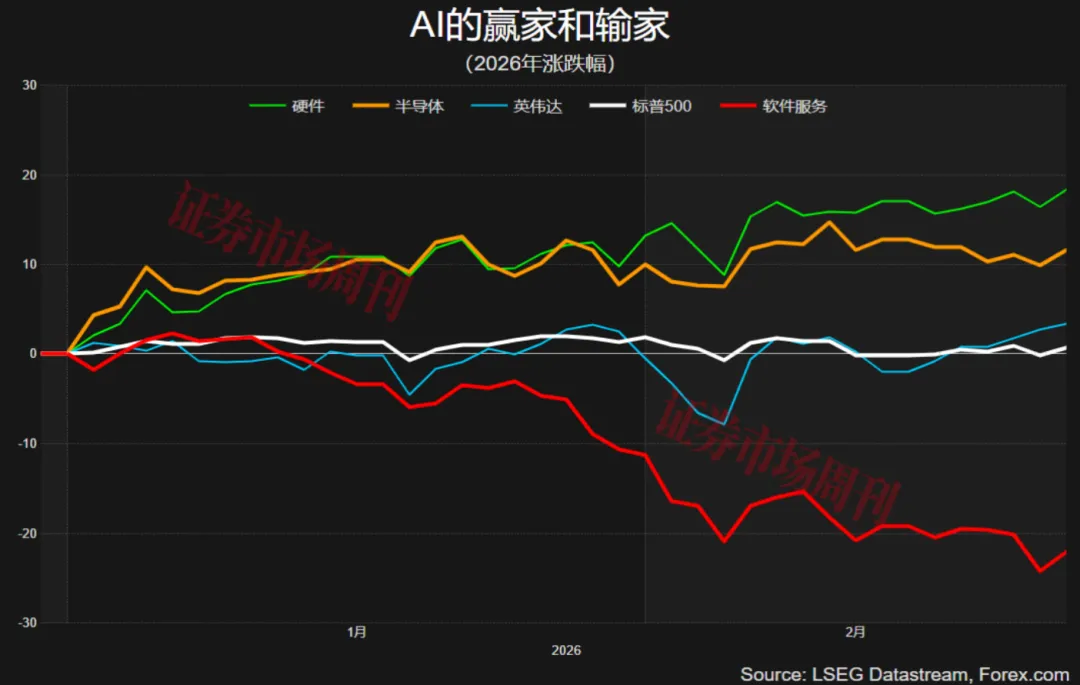 强劲的业绩和指引有望暂时缓解投资者对AI泡沫的担忧,但AI对相关行业造成的冲击(尤其是软件行业)仍需要时间修复。若占标普500超三成权重的科技板块无法恢复强势,大盘很难获得上行动力,更无法追赶亚太和欧洲股市的涨幅。