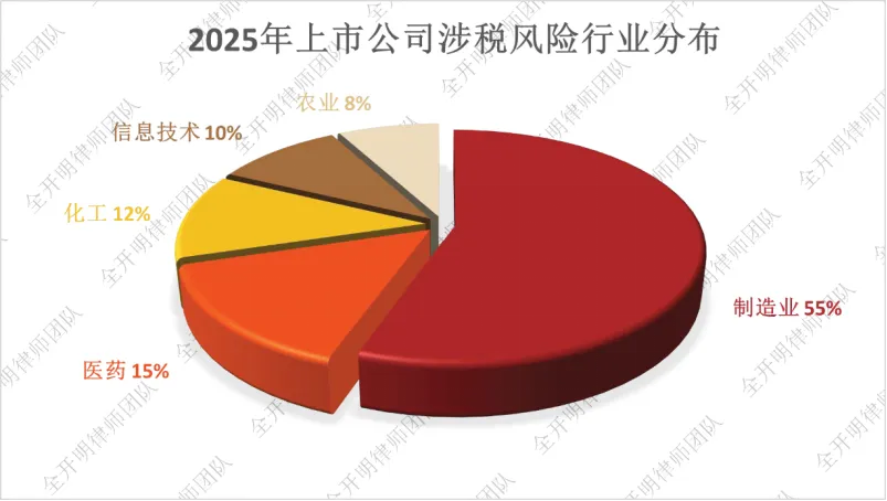 从涉险上市公司所属行业来看,税务风险呈现明显的行业聚集性,同时覆盖多领域: