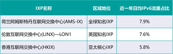 表2 全球不同互联网交换中心近一年日均IPv6流量占比