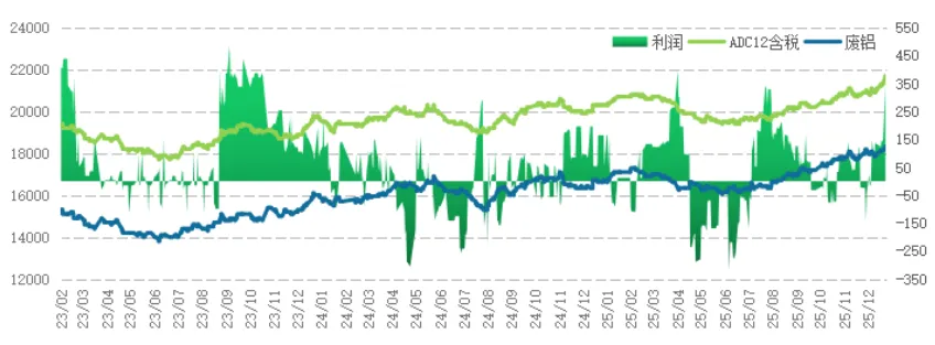 再生铝合金锭生产成本由原料费用+设备折旧费用+人工费+燃气费+铝灰处理费+炉耗等综合测算;废铝原料按破碎生铝(出水95%)进行计算;最新国内再生铝合金平均加工炉耗设定为1.5%(原值2%);近日因地区税返政策波动,成本端税率有所调整。