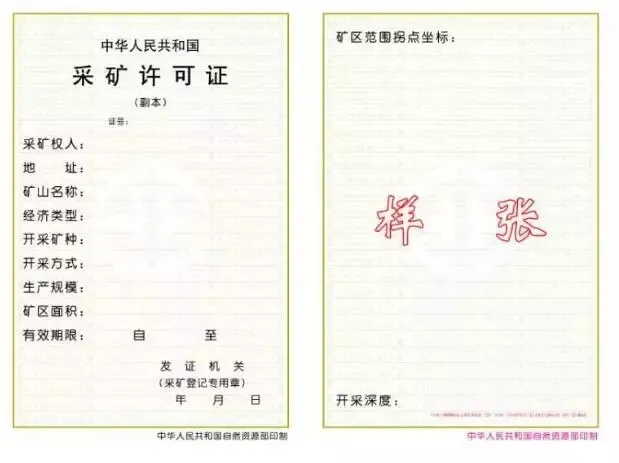 (2018年自然资源部发布的新版《采矿许可证》副本样张)