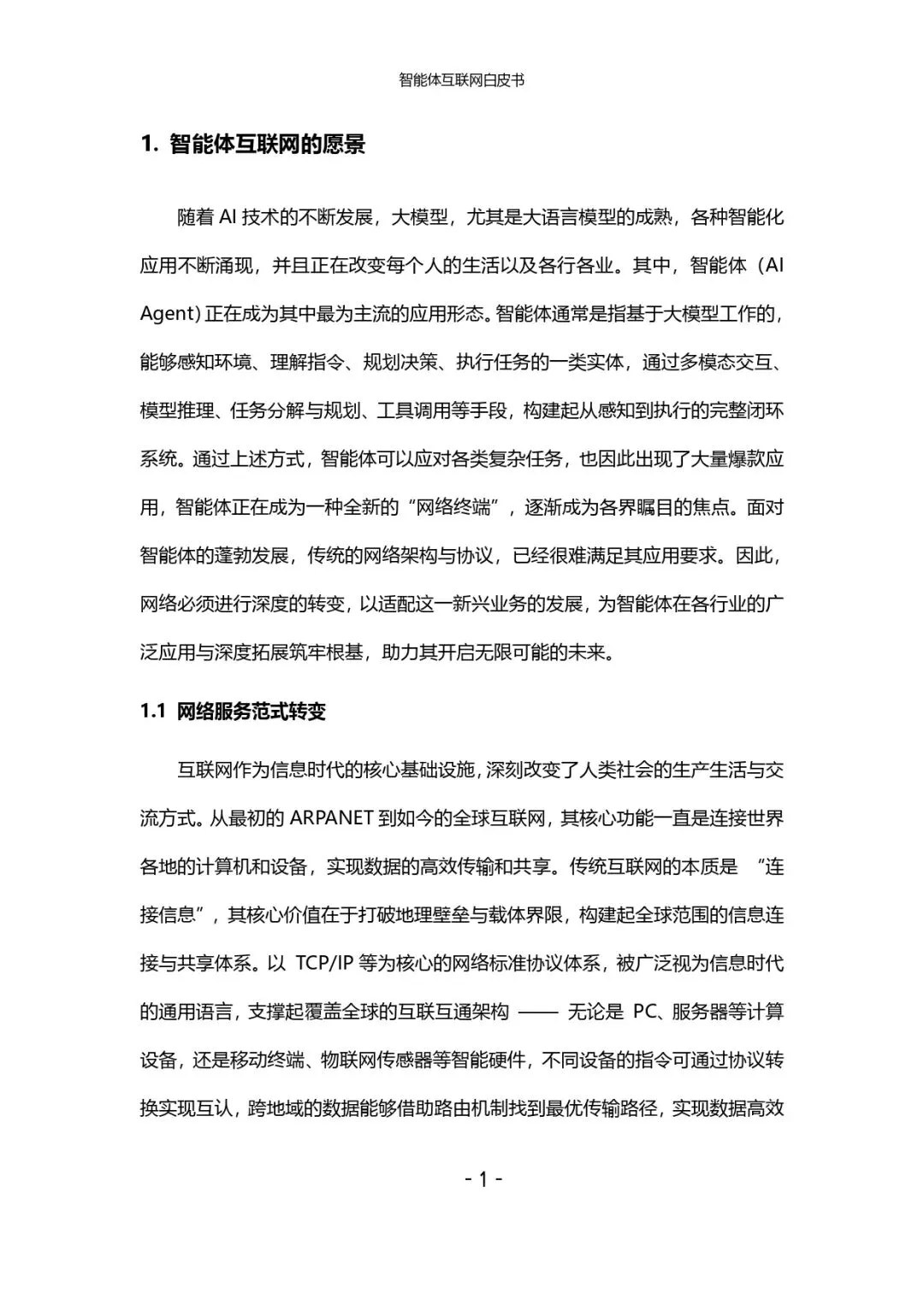 本白皮书系统阐述了智能体互联网的发展背景、核心挑战、系统架构、关键技术、演进路径以及应用案例。随着人工智能技术的迅猛发展,特别是以大模型为核心的生成式AI实现突破性进展,智能体(AI Agent)正成为新一代网络应用的核心形态。智能体互联网旨在推动网络从“连接信息”向“连接智能”的范式转变,构建一个支持智能体自主协作、语义理解和动态交互的新型基础设施。白皮书分析了传统互联网架构在支撑智能体业务时的局限性,提出了以任务为中心的系统架构和关键技术方向,并展望了智能体互联网在智慧网络、智能应用、智慧城市等领域的应用前景。最终,白皮书呼吁产业链各方共同推动标准建设、生态培育和应用落地,以促进智能体互联网的规模化发展。