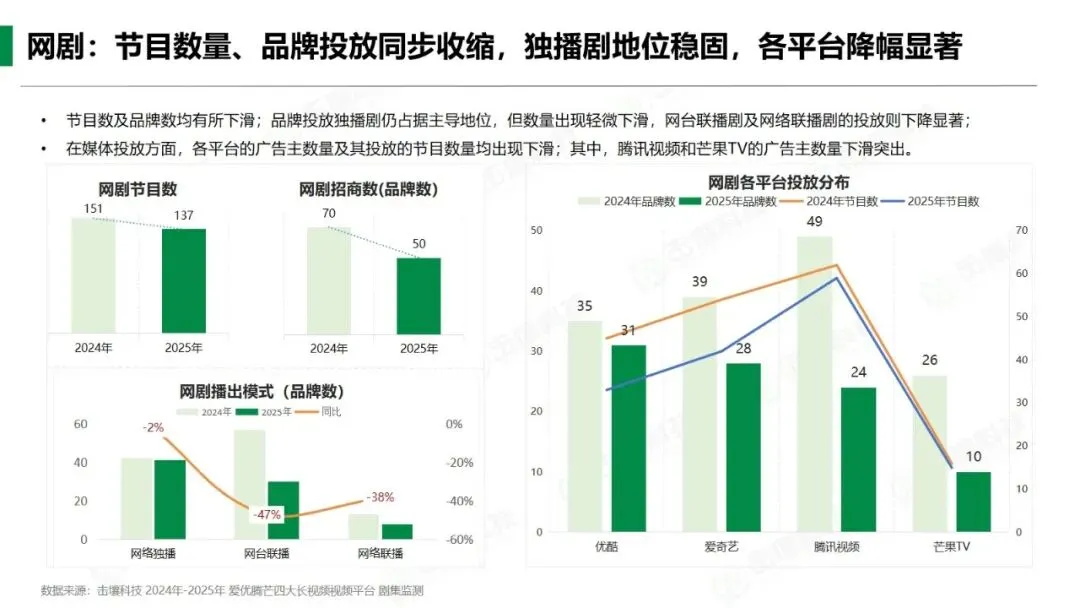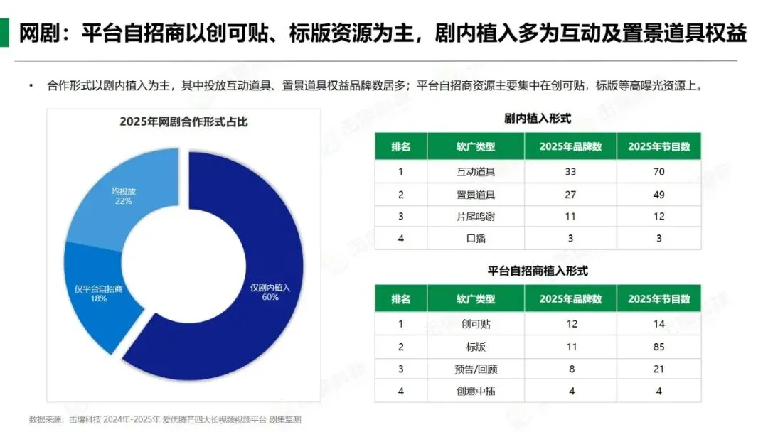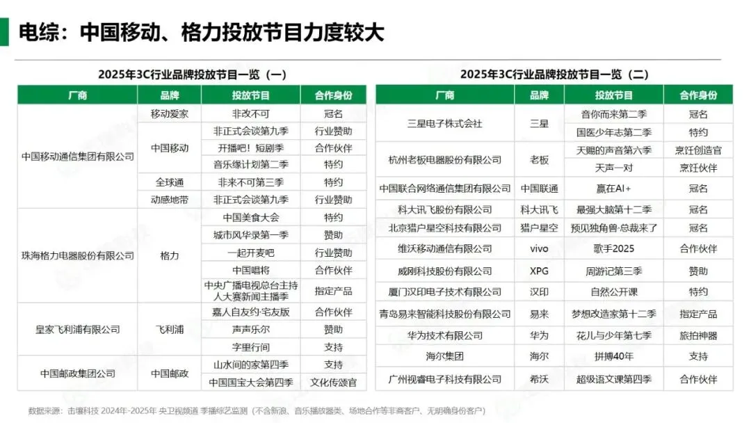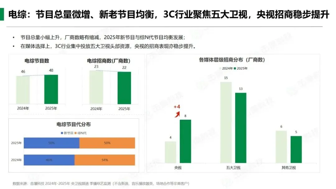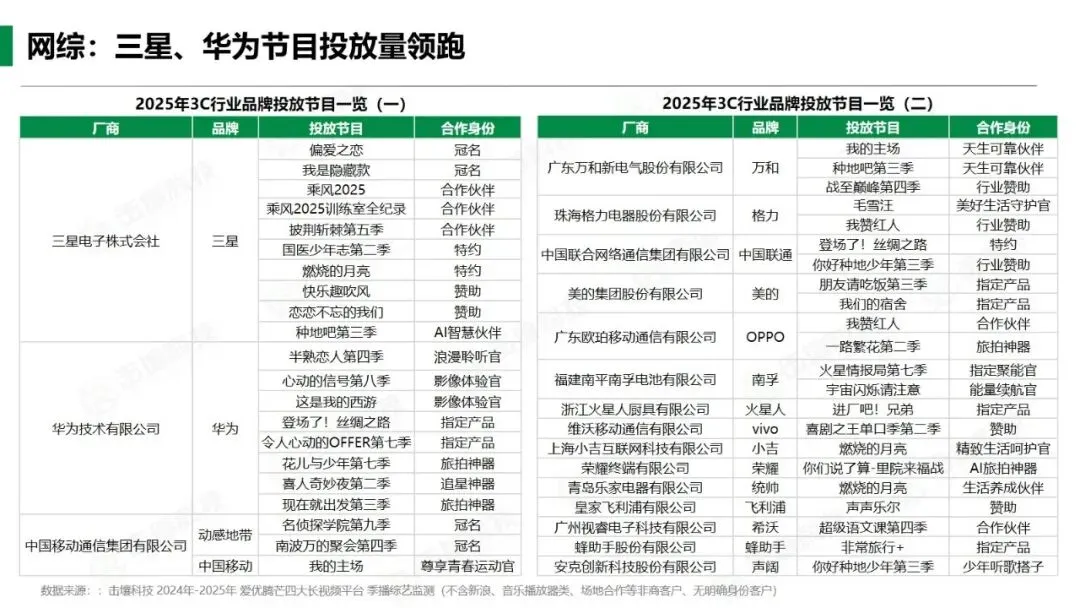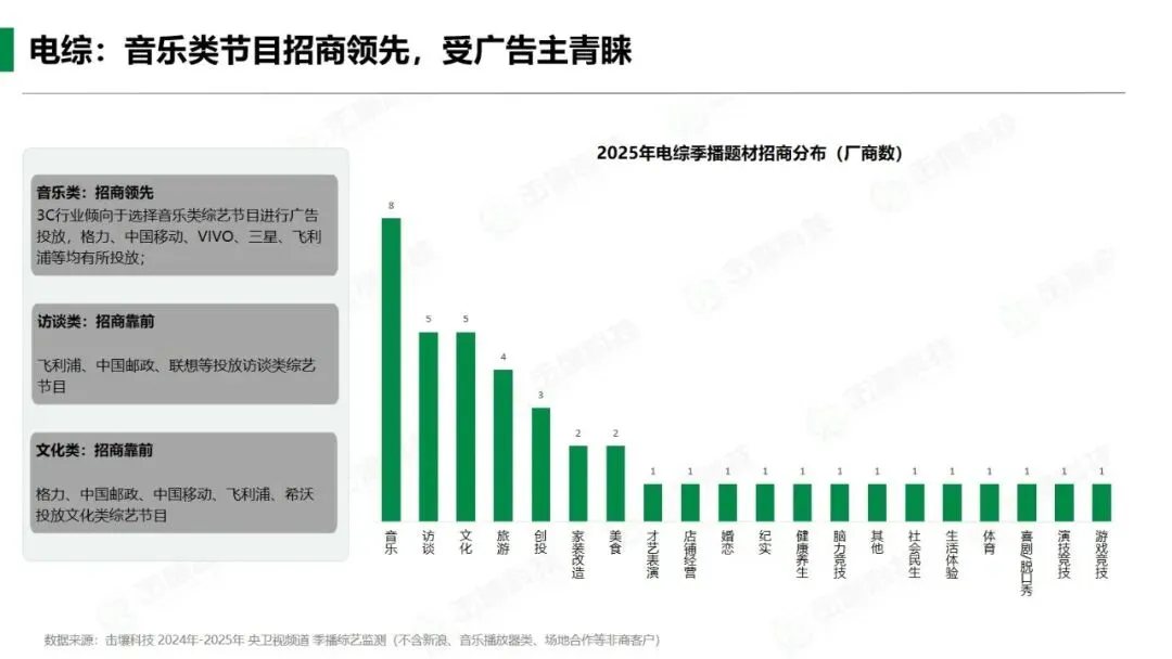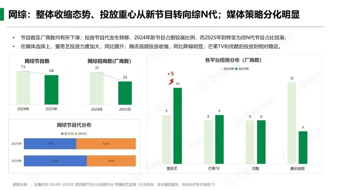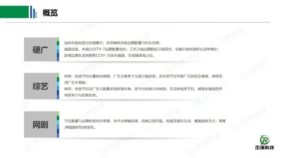 · 可在线查看各电视台和视频网站最新上线节目&各节目的广告主投放情况,包括广告主合作的身份、身份的权益、权益的时长等,通过全量的电视综艺、电视剧、电视硬广、网络综艺、网剧等监测分析,洞察广告主完整的预算分布。