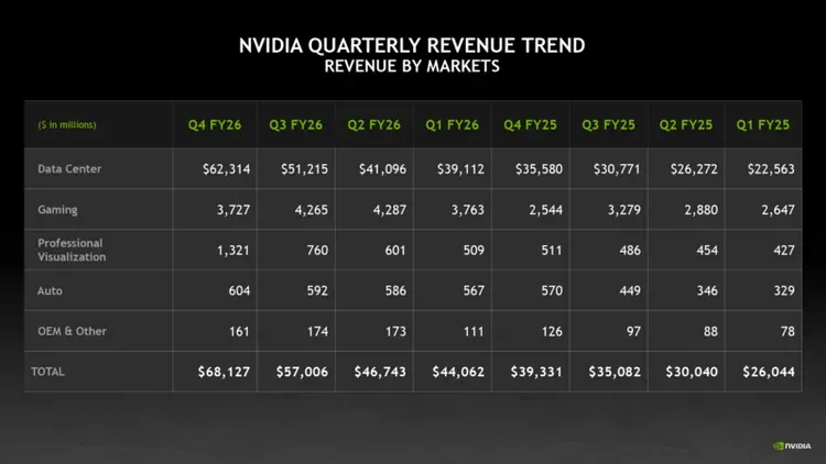 681亿美元单季营收,2159亿美元全年营收,数据中心业务占比冲到91.5%——这些数字我看一遍记不住,看两遍还是觉得跟自己关系不大。但黄仁勋电话会里反复提的那句话,倒是让我放下手机想了很久:
