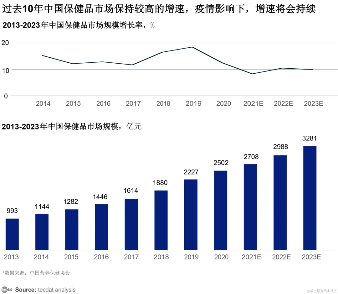 在过去的10年里,中国保健品市场一直保持着较高的增速。而随着疫情的影响,这种增速有望继续持续下去。
