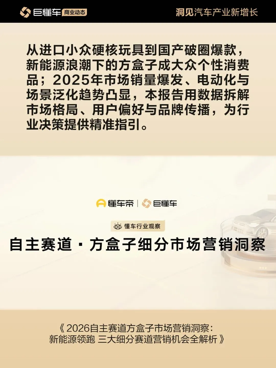 本报告将从市场销量趋势和细分结构、购车用户特征、品牌心智传播等几大维度展开,通过区分不同类型方盒子车型的数据表现,为行业决策者提供数据驱动的市场洞察。