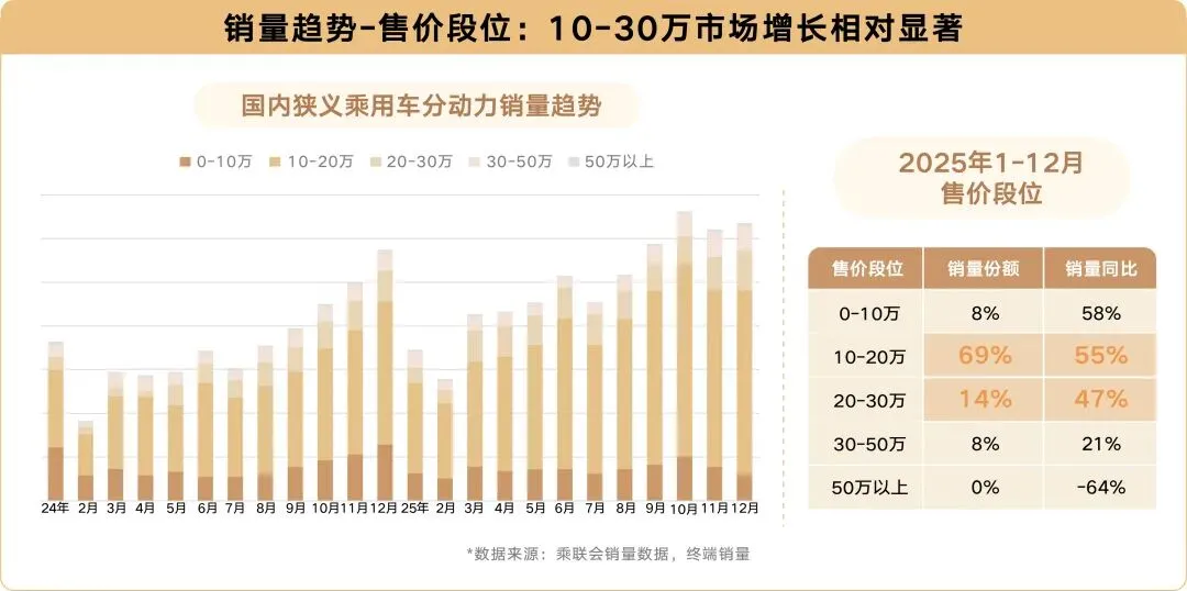 10-30万市场是主流:10–30 万级是市场主力且增速领先。