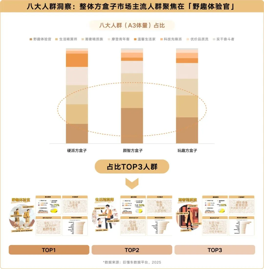 八大人群洞察:整体方盒子市场主流人群聚焦在「野趣体验官」;