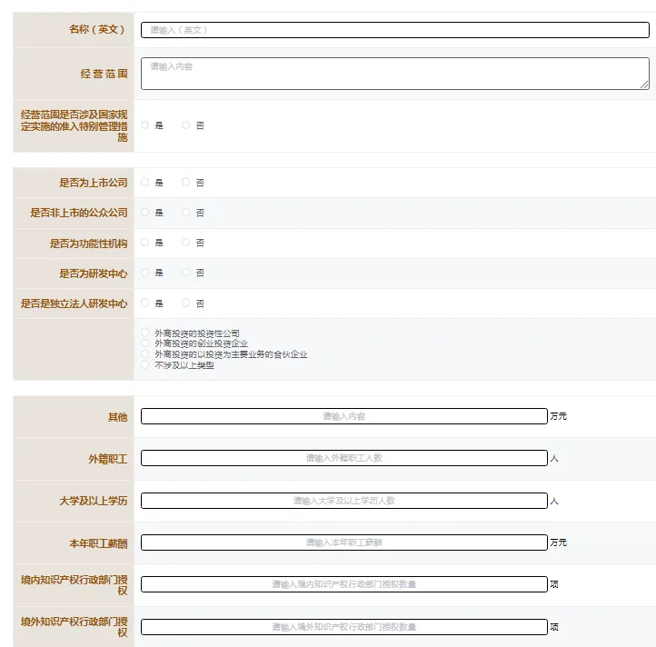 经营范围:根据《营业执照》填写。如经营范围涉及国家规定实施的外商投资准入特别管理措施(包括《外商投资准入特别管理措施(负面清单)》和《自由贸易试验区外商投资准入特别管理措施(负面清单)》,还应勾选相应条目。