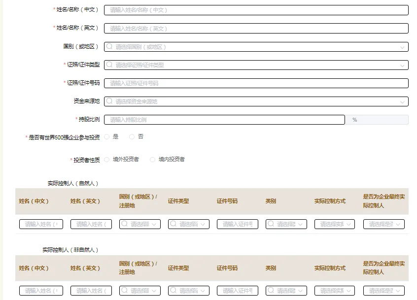 本页面请根据截至报告年度年末的状态填写投资者信息,如有多个投资者,请填完一个后保存再添加。