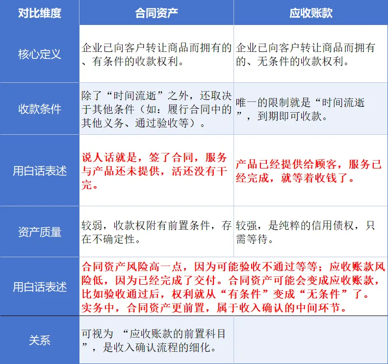 2、合同资产 vs. 应收账款:关键在于“收款条件”