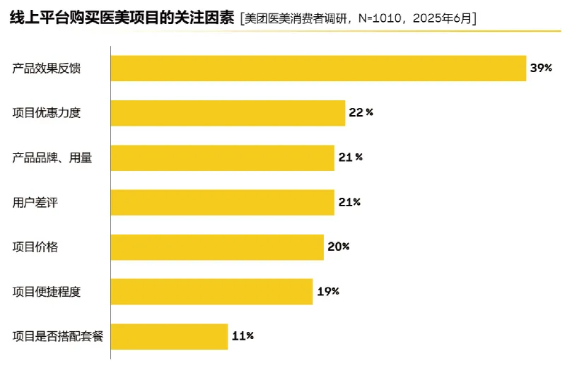 医美市场消费决策理性化,消费者追求品质消费。罗兰贝格相关数据显示39%关注“产品效果反馈”,22%关注“优惠力度”,21%关注“产品品牌、质量”。