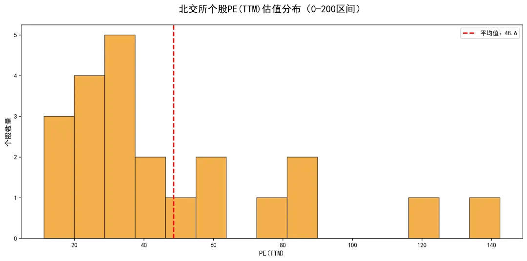 从PE(TTM)估值来看,北交所上市公司估值水平差异较大,剔除负PE企业后,估值主要集中在20-80倍区间,平均值约为56.8倍。同力股份估值最低,PE(TTM)仅为11.26倍,开发科技、德瑞锂电等企业估值也相对较低,均低于20倍,具备一定的估值优势。