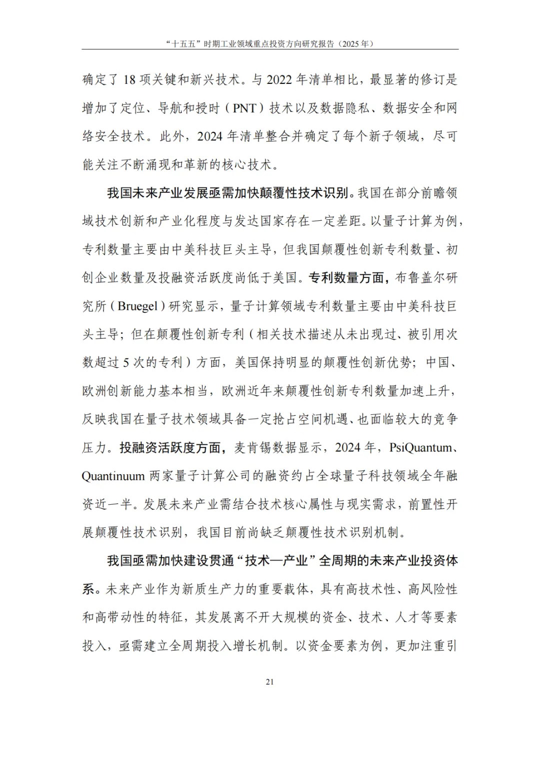 建议:国家层面建立完善面向“十五五”的技术产业投资方向动态识别体系,推行基于“投资类型—技术与产业阶段”的投资方式精准适配机制,创新财政金融政策协同体系。