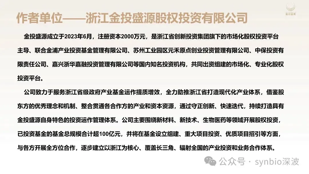 由浙江金投盛源股权投资有限公司撰写的《合成生物行业&投引策略研究报告》已发布,该报告从技术路径、市场格局、代表企业、产业集群、政策动向等多维度分析解析,为业内人士提供系统性的行业洞察与投资参考。