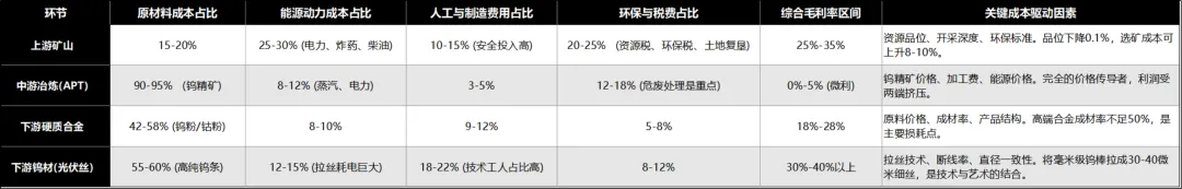 钨产业链是一条脉络清晰但价值分布极不均衡的“资源-技术”双驱动链条。其上游是资源与政策的竞技场,中游是规模与成本的绞肉机,下游则是创新与应用的星辰大海。