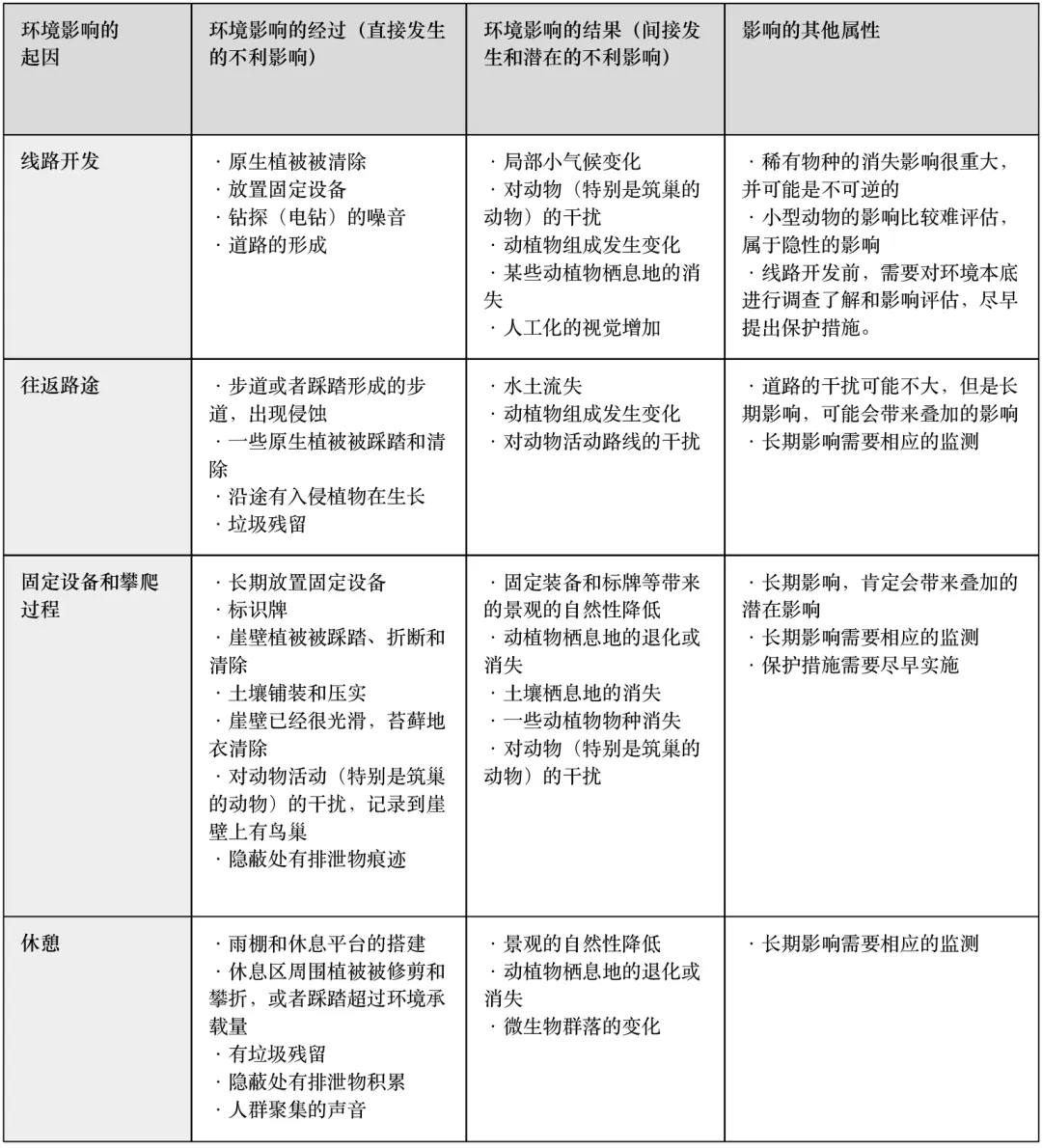 ⑤ 攀岩的过程中是如何对崖壁生物多样性带来影响的?