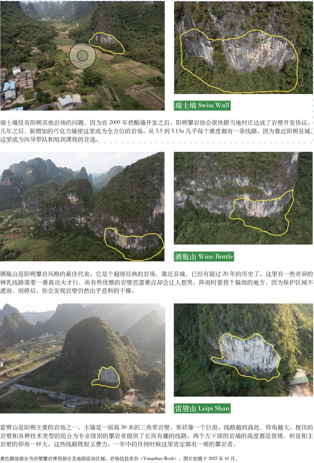 1)瑞士墙:岩壁靠近村边田地,岩壁宽阔,34条路线,最多时候可汇聚100+人;