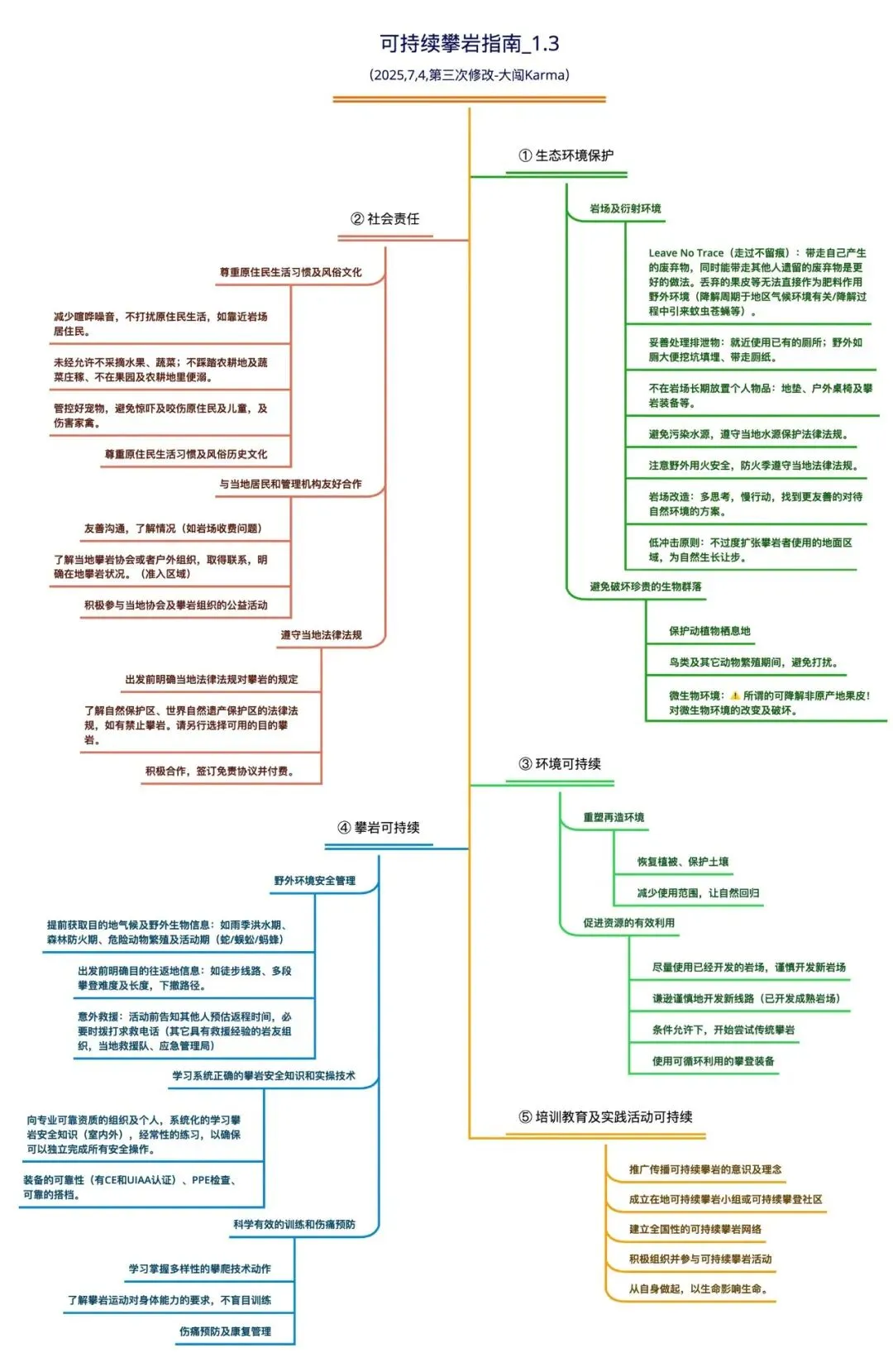 以《可持续攀岩指南1.3》为基础,提出一些可以具体操作的建议如下: