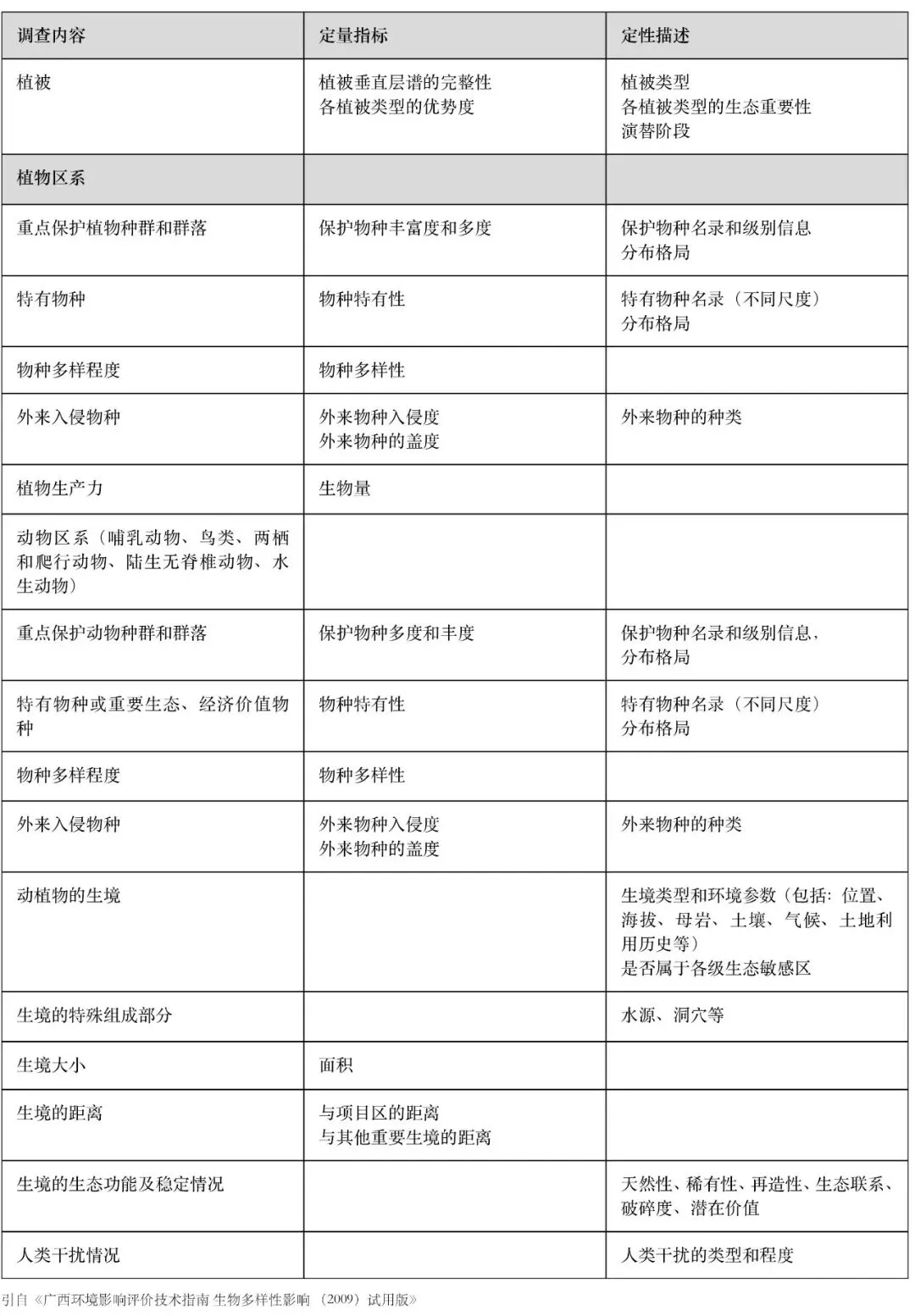 对环境影响的严重程度进行判断,是一种定量结合定性的分析,需要基于两个主要方面的调查数据才能得出判断结论。这两个方面是: 一是地块本身的生态价值,二是环境干扰的空间上的和时间上的严重程度。 调查的方法包括对栖息地和物种的调查分析,也可以包括访谈和问卷等。