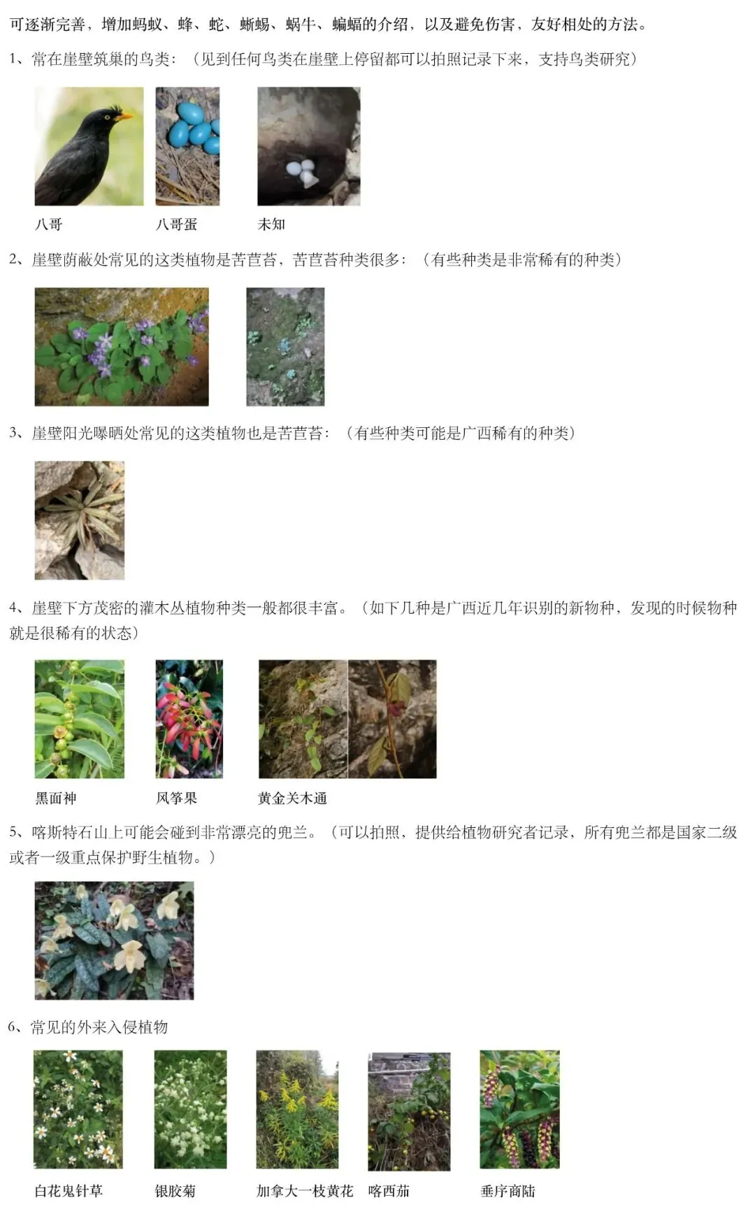 ·还有可能误伤一些稀有的物种,在石灰岩崖壁区域还是有可能性的,因为崖壁植被调查很困难,仍然有可能会存在调查空白区域。近几年,以广西为例,在石灰岩区域非自然保护区就发现了好多植物新物种,如,阳朔的风筝果、崇左安息香、恩城黑面神、河池德昭藤、隆林的一种绞股蓝,石山苣苔新种、报春苣苔新种,这些物种自发现和识别之时已经是极度稀有。广西石灰岩喀斯特地貌区域是苦苣苔科植物和兰科植物非常丰富的地区,会出现某一种苦苣苔就独一无二地分布在村边的一座山上的情况。