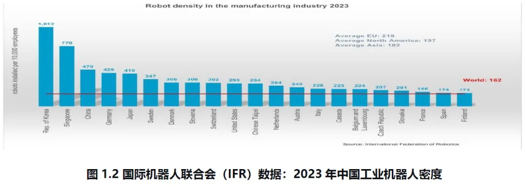 中国拥有全球罕见的物理 AI 规模化应用土壤,制造业智能化升级、物流履约效率压力、劳动力结构转型等需求,共同推动物理 AI 从技术概念走向规模化生产力。国际机器人联合会数据显示,2023 年中国工业机器人密度已达 470 台 / 万人,位居全球前列,2024 年新装工业机器人约 29.5 万台,保有量突破 200 万台,为物理 AI 的集成应用提供了扎实的产业基础。同时,美团自动配送体系、优必选人形机器人工厂实训、医疗康复机器人等落地案例,已充分验证物理 AI 在降本、增效、提质上的核心价值,证明其并非远景概念,而是正在多行业形成的系统化生产力。