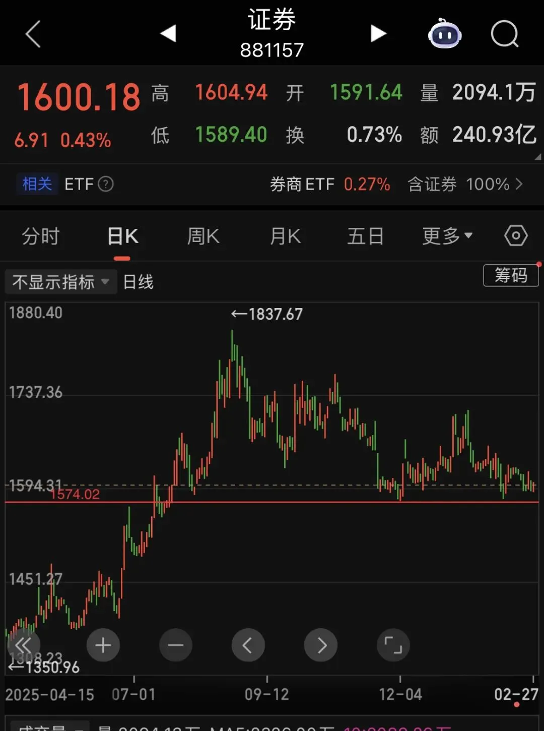 证券板块关键颈线止跌非常重要,目前还是有希望获得支撑的。