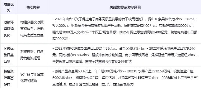 广西直播电商产业已形成农产品电商、跨境电商和产业带直播三大核心模式,产业规模持续扩大,政策环境不断优化,区位优势日益凸显。