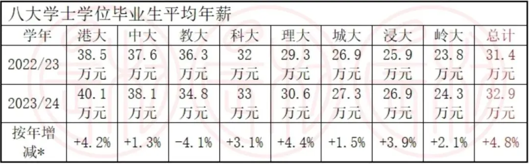 再看回报:根据香港教资会最新数据,2023/2024学年港八大本科毕业生平均年薪达32.9万港币,其中港大毕业生平均年薪高达40.1万港币,同比增长4.2%,首次突破40万!硕士毕业生薪资更上一层楼,大多数同学毕业后2-3年就能收回留学成本。