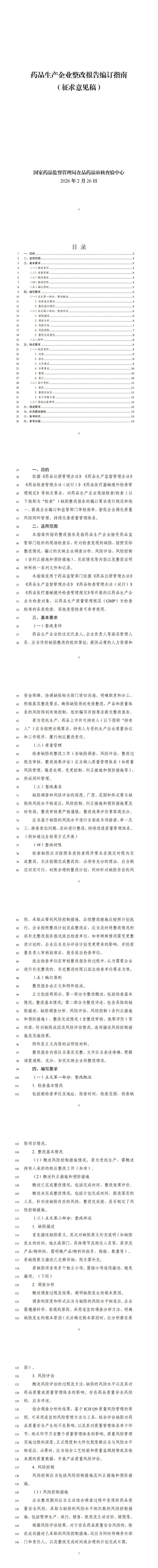 附件:1.药品生产企业整改报告编订指南(征求意见稿20260226)